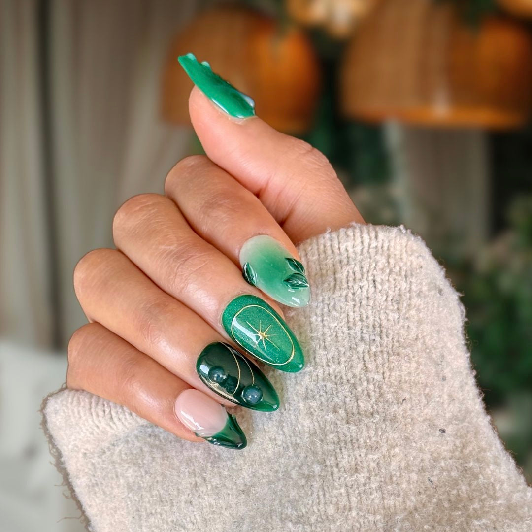 Description: ive into serene beauty with these elegant oval nails in a rich, calming green. Green Lagoon evokes the tranquil depths of a hidden oasis fresh, natural, and effortlessly chic.
