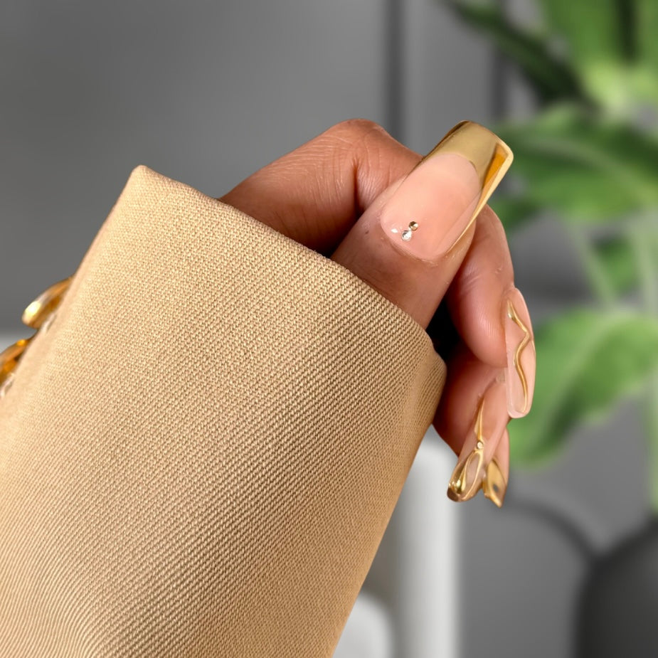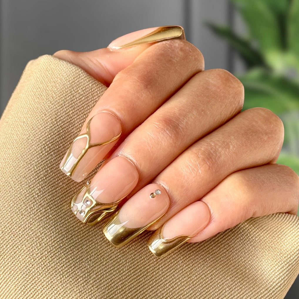 Description: Golden Hour is pure New Year’s magic at your fingertips. This luxurious gold set dazzles with a radiant metallic finish that catches every light, making you the star of the countdown. Bold, glamorous, and effortlessly festive, these nails are perfect for ringing in the new year with sparkle, shine, and unforgettable style.