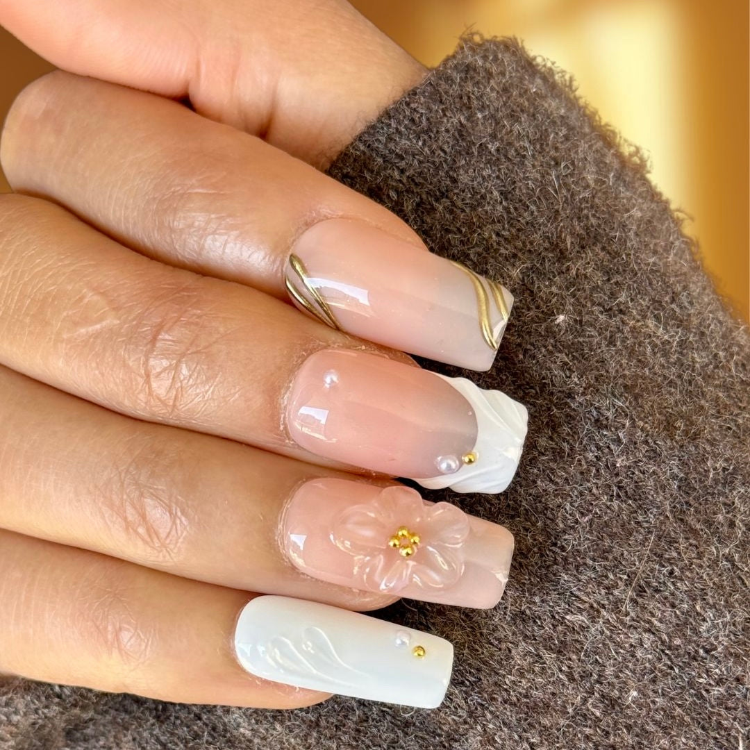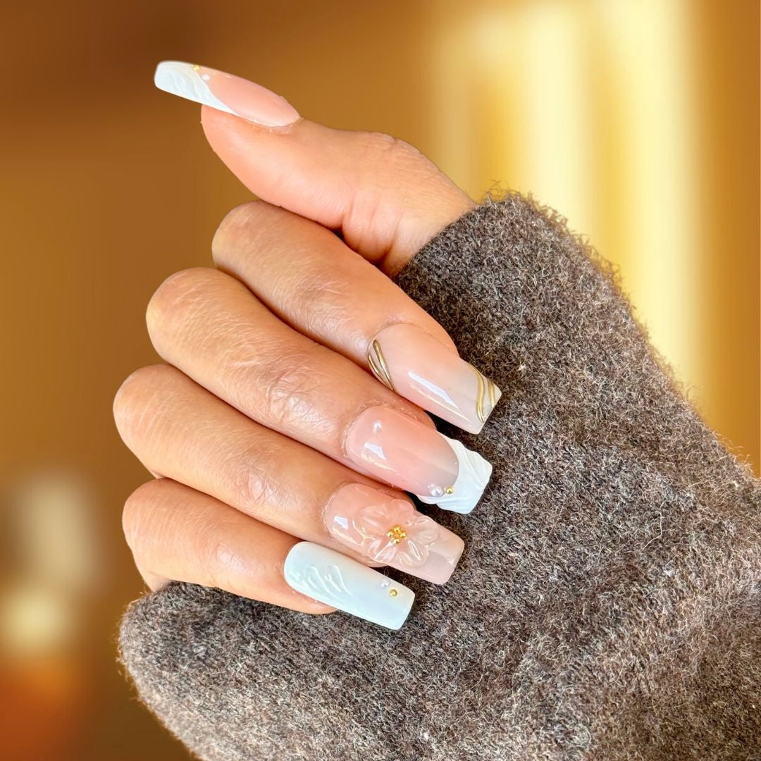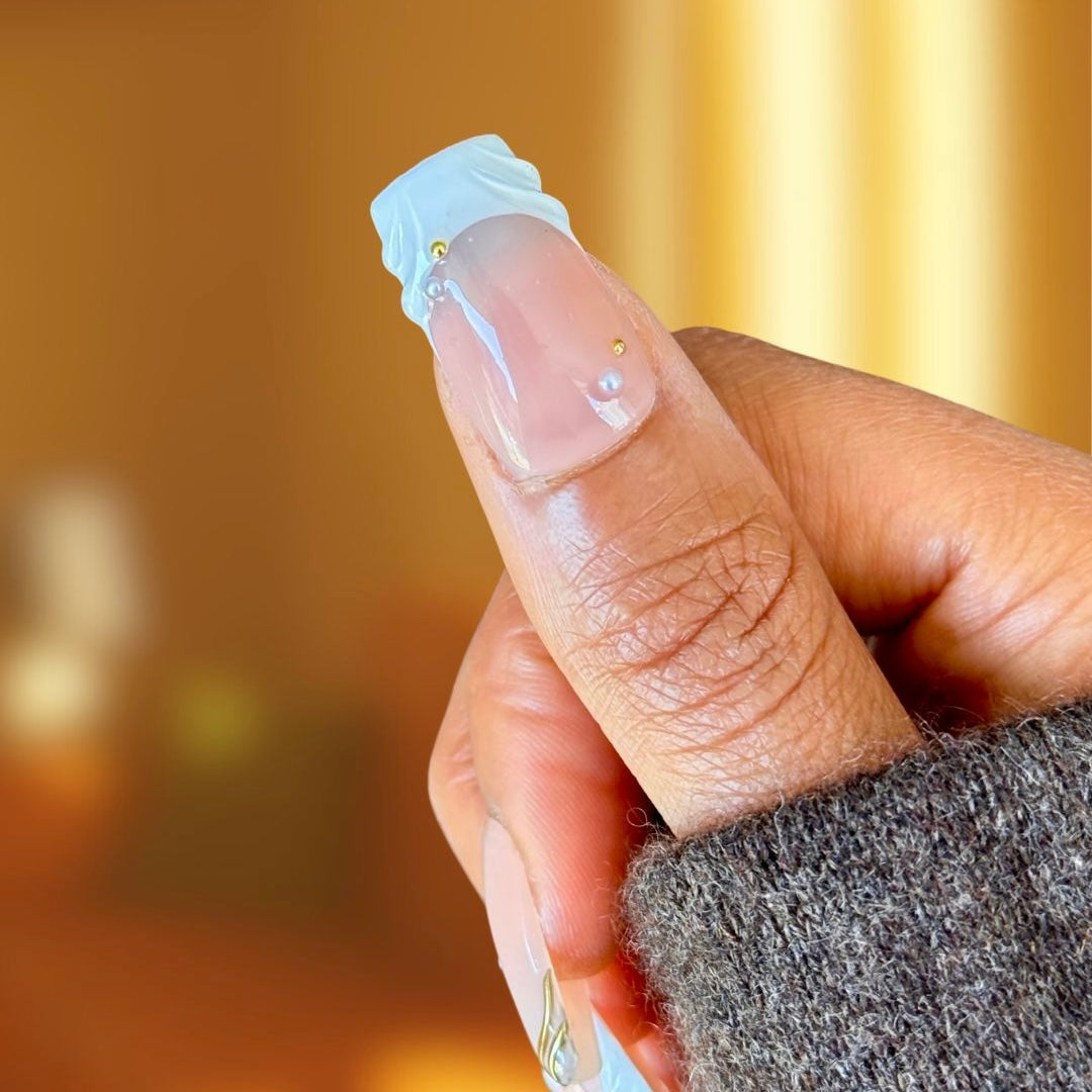 Description: A cloud of elegance at your fingertips. Soft white with a subtle glow, these press-on nails capture light and attention with quiet sophistication. Heavenly is for the woman who moves through life with grace, beauty, and effortless charm.
