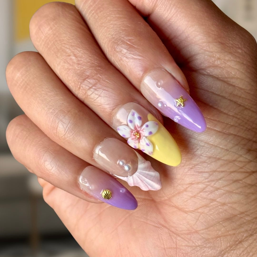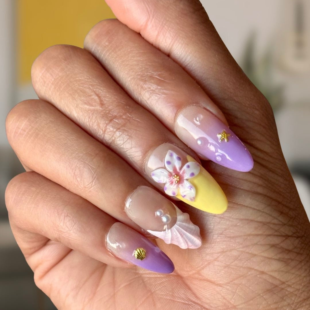 Description:Step into a world of colour and charm with Petal Paradise. This set blooms with pastel purples and sunny yellows, adorned with delicate pearls, golden accents, and a playful 3D flower centrepiece. Bright, joyful, and full of life.