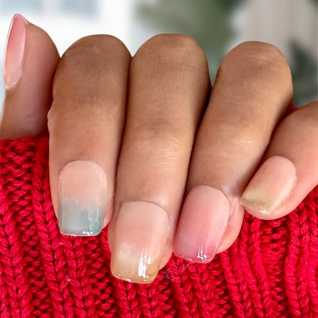 Description: Embrace the quiet beauty of simplicity with Dream Sheer. This press on nail set captures the soft translucence of morning light, kissed with delicate washes of colour that fade like a gentle dream.